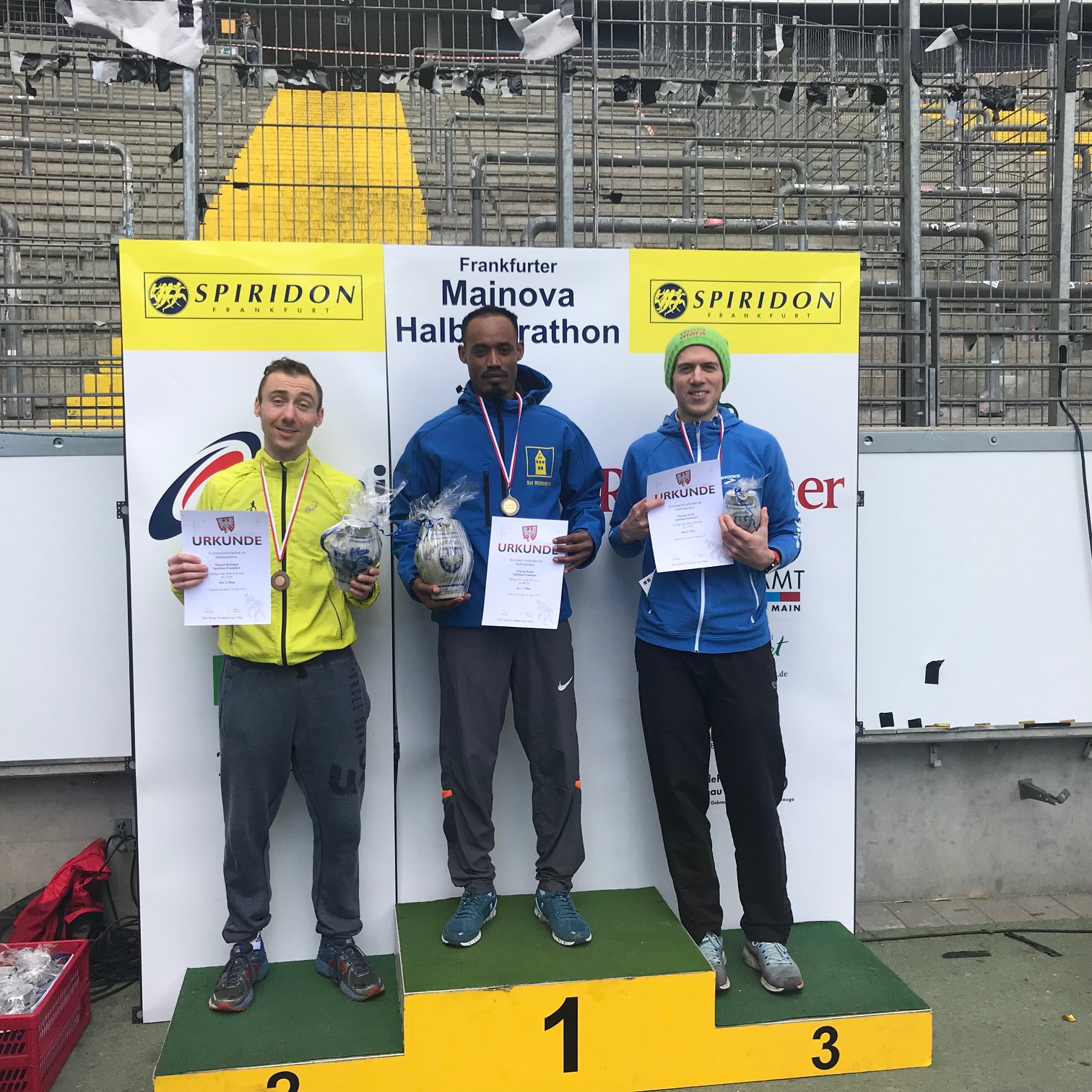Für Tilahun Babsa (Spiridon Frankfurt) blieb die Stoppuhr bei 1:09:26 stehen. Auch die beiden nachfolgenden Läufer in der Kreismeisterschaftswertung starten für den mitgliedsstärksten Leichtathletikverein im Kreis Frankfurt. Vizemeister wurde Manuel Ruhland (01:12:36) vor Markus Heidl (01:14:46)