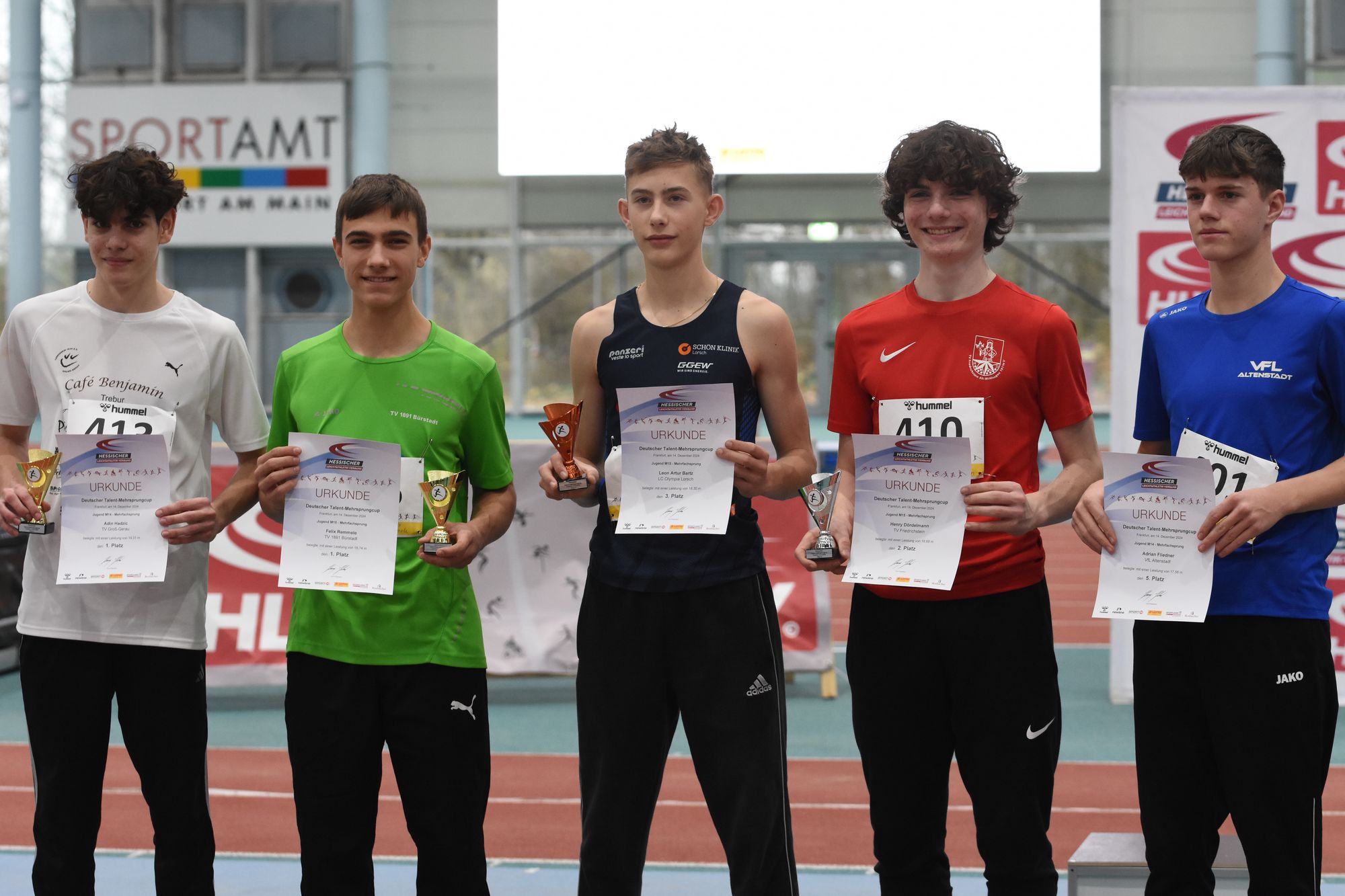 Nach dem sehr erfolgreichen Hessischen Talent-Mehrsprungcup am 09. November, war der Hessische Leichtathletik-Verband auch Gastgeber des Deutschen Talent-Mehrsprungcups in Frankfurt. Deutschlands Top-Springer:innen der M/W13-M/W15 zeigten im 30m fliegend und Mehrsprung ihr Können. Unter den Besten: Auch die hessischen Sprungtalente.