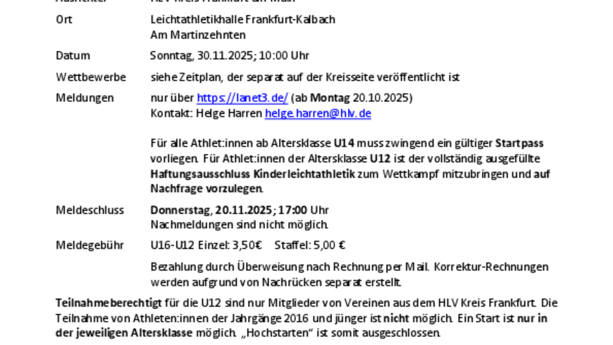 Meldeschluss: Donnerstag, 20.11.2025; 17:00 Uhr