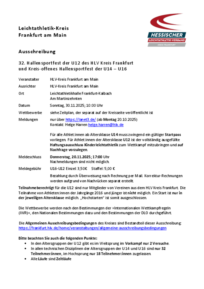 32. Kreis-Hallensportfest am 30.11.2025 U12-U16
