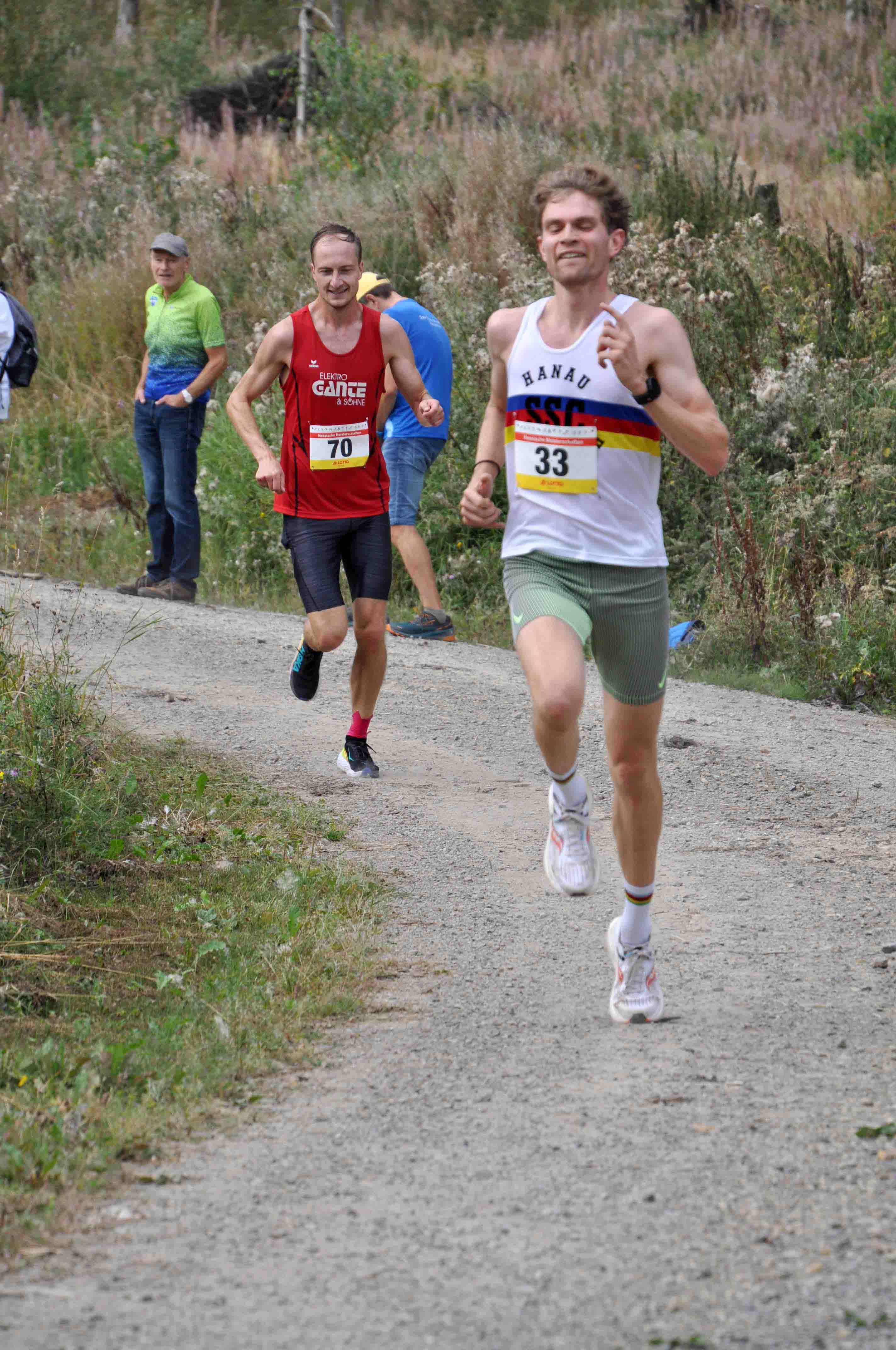 Durch Charlotte Weigand, W U20, kam der ASC zu einem weiteren Titel. Zweite wurde hier Marika Hack vom TSV Niederelsungen. In der W U18 ging der Titel an Teresa Dinges vom VfL1860 Marburg, die sich mit 80 sec. Vorsprung erfolgreich gegen die drei dann folgenden Läuferinnen des LC Marathon Rothenburg, Johanna Weber, Emily Harms und Marina Gnauert, durchsetzte. Letztere erhielten aber dann ihre Goldmedaille für ihren Mannschaftserfolg. Quasi Teresa vorgemacht hat es Laurenz Christian Steiß mit seinem Sieg in der M U18 in 43;18 min. Nur sechs Sekunden Rückstand hatte Tom Knauer vom SSC. Mit fast drei Minuten Abstand folgte der Drittplatzierte Yann-Hendrik Hopp in den Farben von Eintracht Frankfurt. Als einziger Repräsentant der TG Camberg vertrat Johann Escher als Sieger der M U20 seinen Verein in 43:16 min. würdig. Max Kleinschmidt, TSV Niederelsungen, kam als Zweiter ebenfalls auf fast drei Minuten Rückstand. Noch größer war die Zeitdifferenz des Drittplatzierten Lars Gerbig, LG Rüsselsheim, auch wenn sein Trainer spontan reagierte mit: "Dritter Platz - die Fahrt hat sich gelohnt!"