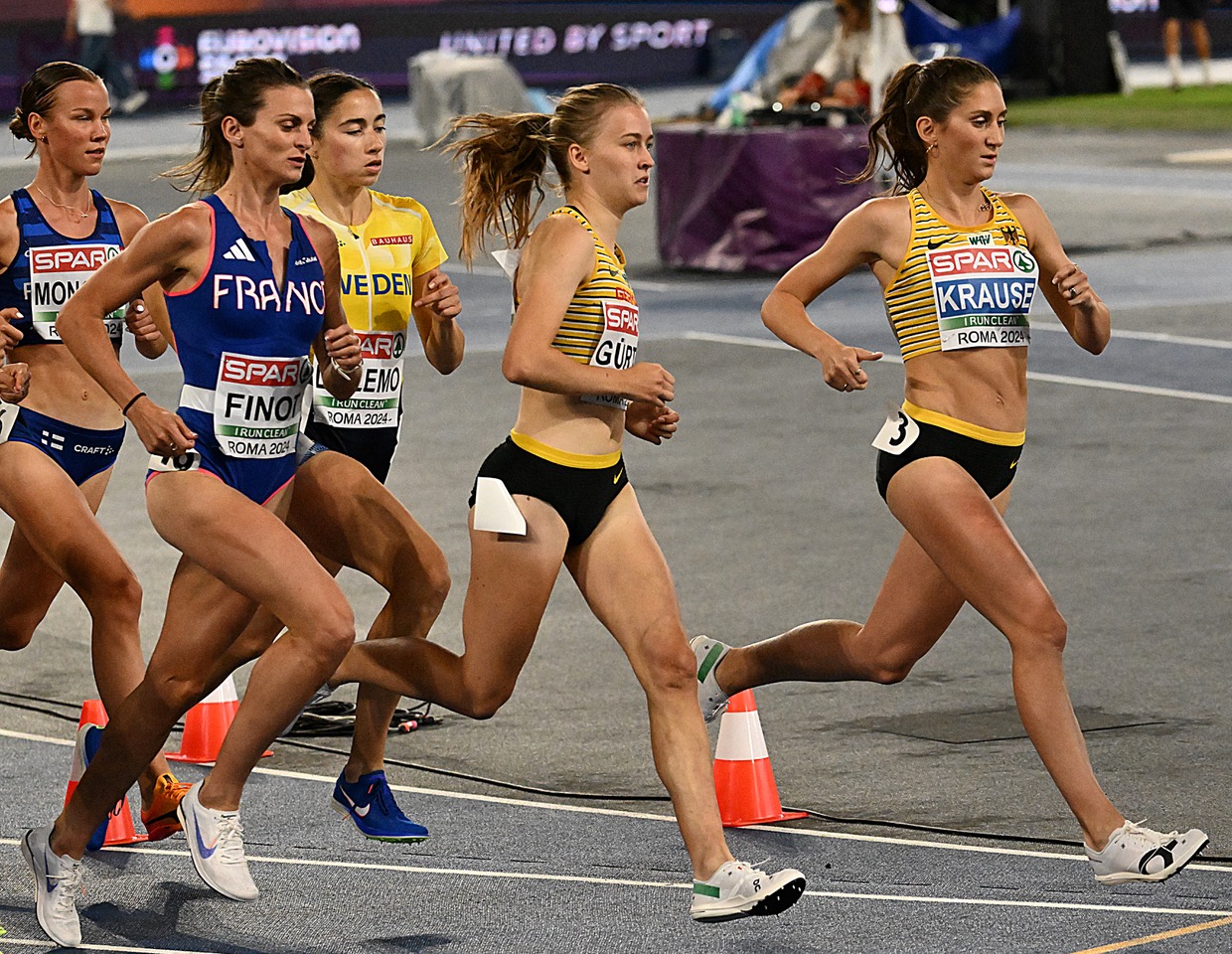 An Tag drei sind insgesamt neun hessische Athletinnen und Athleten in Rom am Start. Den Anfang machten die Langstrecklerinnen Melat Kejeta und Katharina Steinruck. Pünktlich um 9:30 Uhr gab es für die zwei und ihre drei Nationalmannschaftskolleginnen den Startschuss zum Halbmarathon. Trotz schwüler und warmer Temperaturen war es vor allem Kejeta, die lange in der Führungsgruppe mitlaufen konnte. Am Ende stand ein grandioser Platz fünf für sie zu Buche. Steinruck hatte mit den Temperaturen zu kämpfen und erreichte in der Endabrechnung Platz 37. Durch eine starke Teamleistung haben aber beide Grund zum Jubeln: Silber in der Mannschaftswertung und die erste Medaille für Team Hessen!