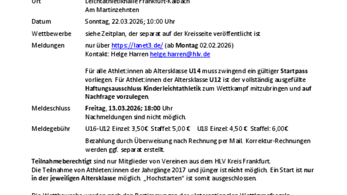 Ort Leichtathletikhalle Frankfurt am Main-Kalbach,